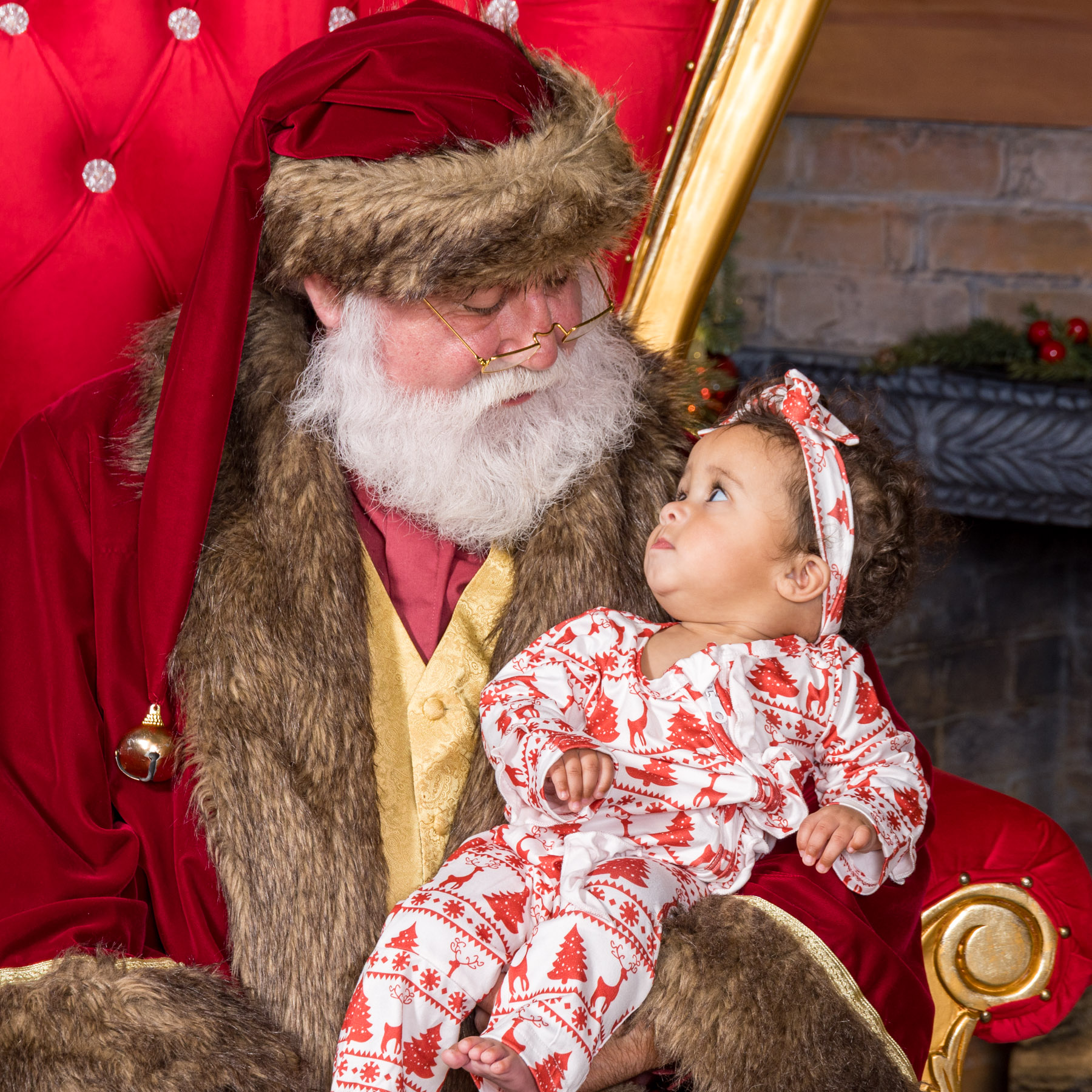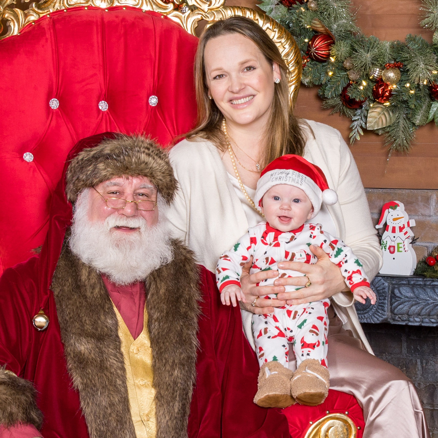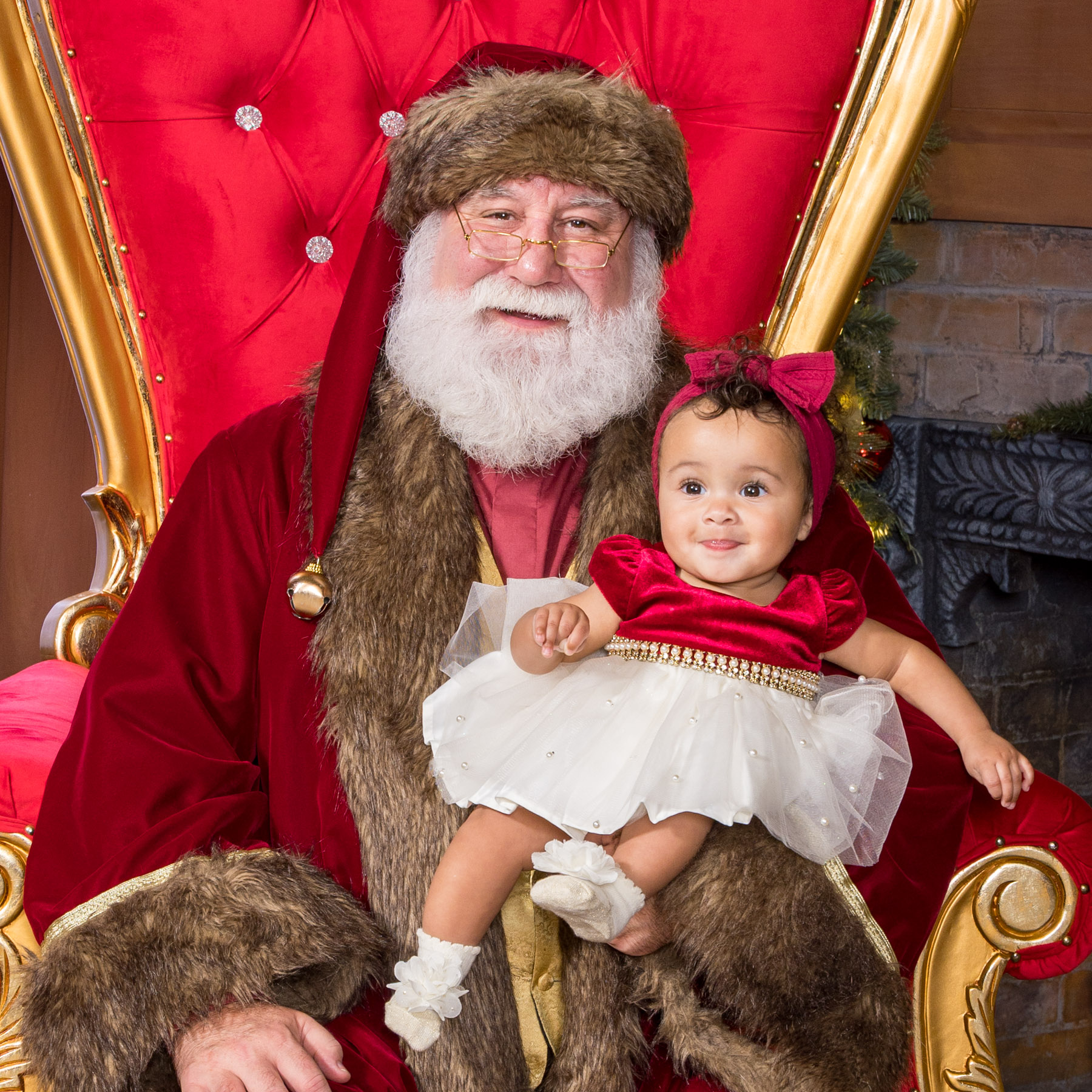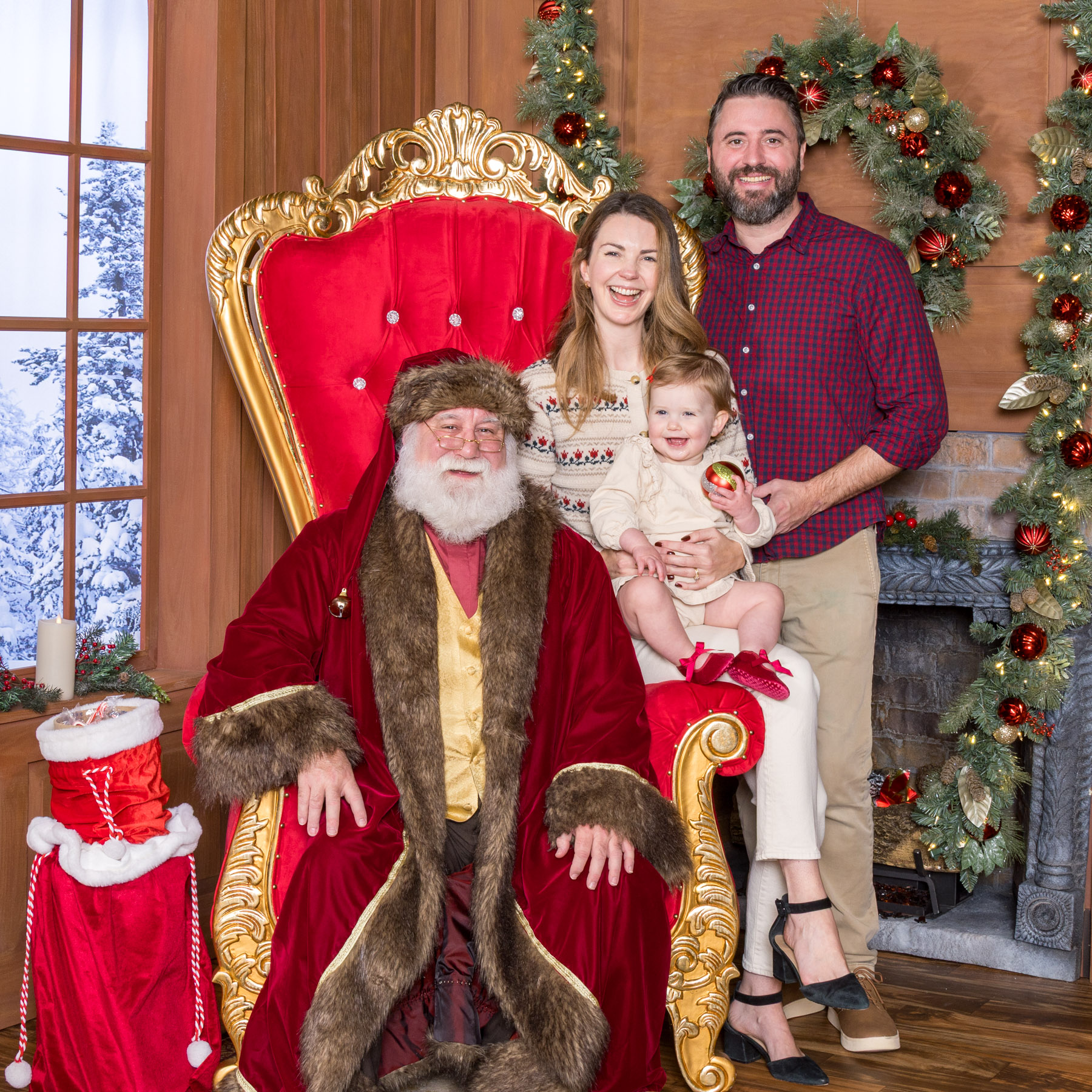 Our Santa is a gentle, quiet, and handsome jolly fellow—beloved by babies and parents alike for his calm, warm presence, and we have a great “wrangler” to help get the best images of you and your little one.