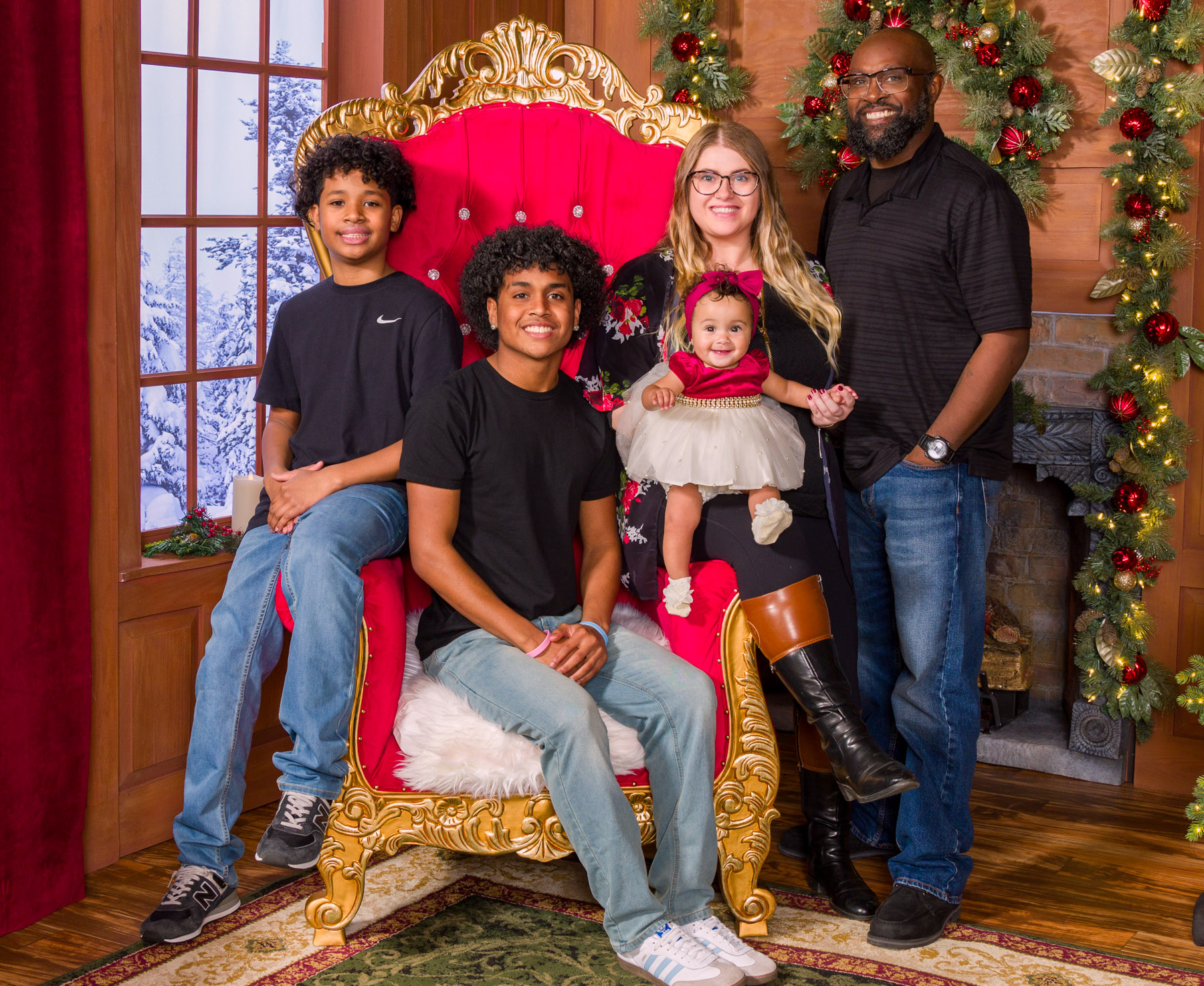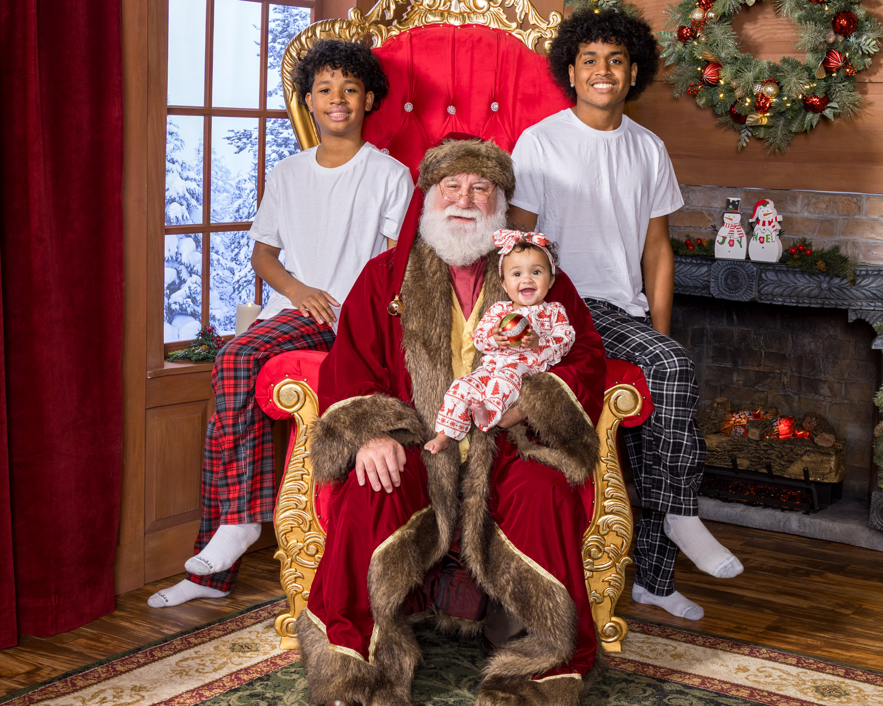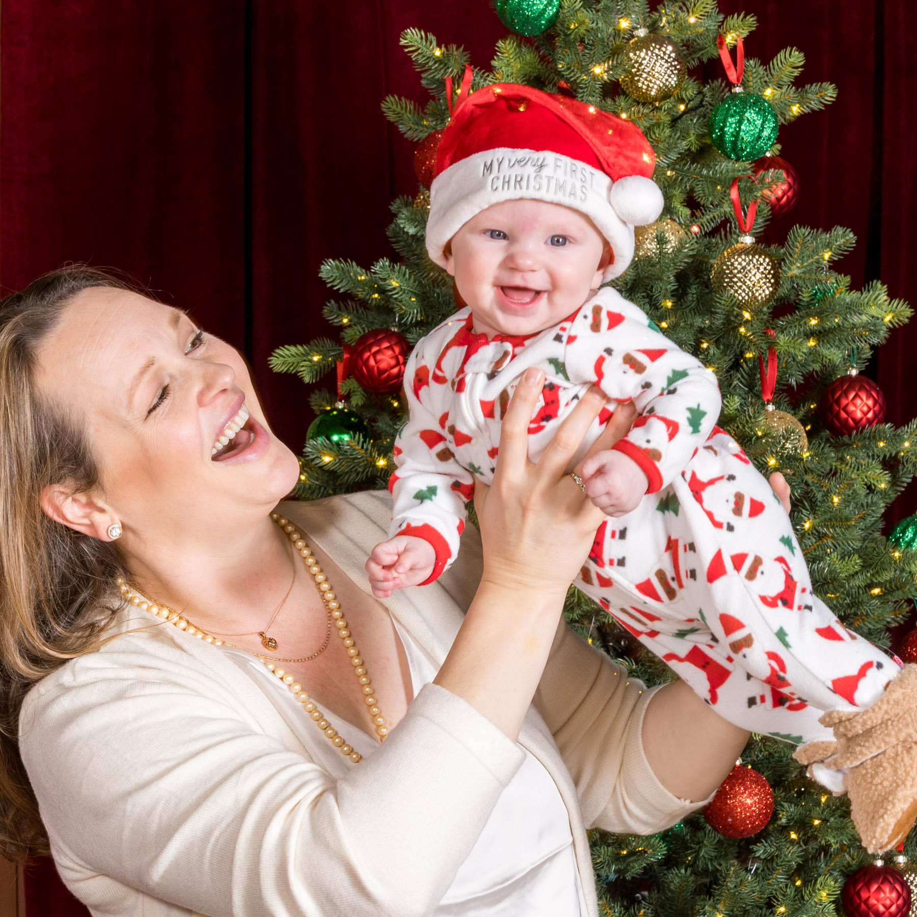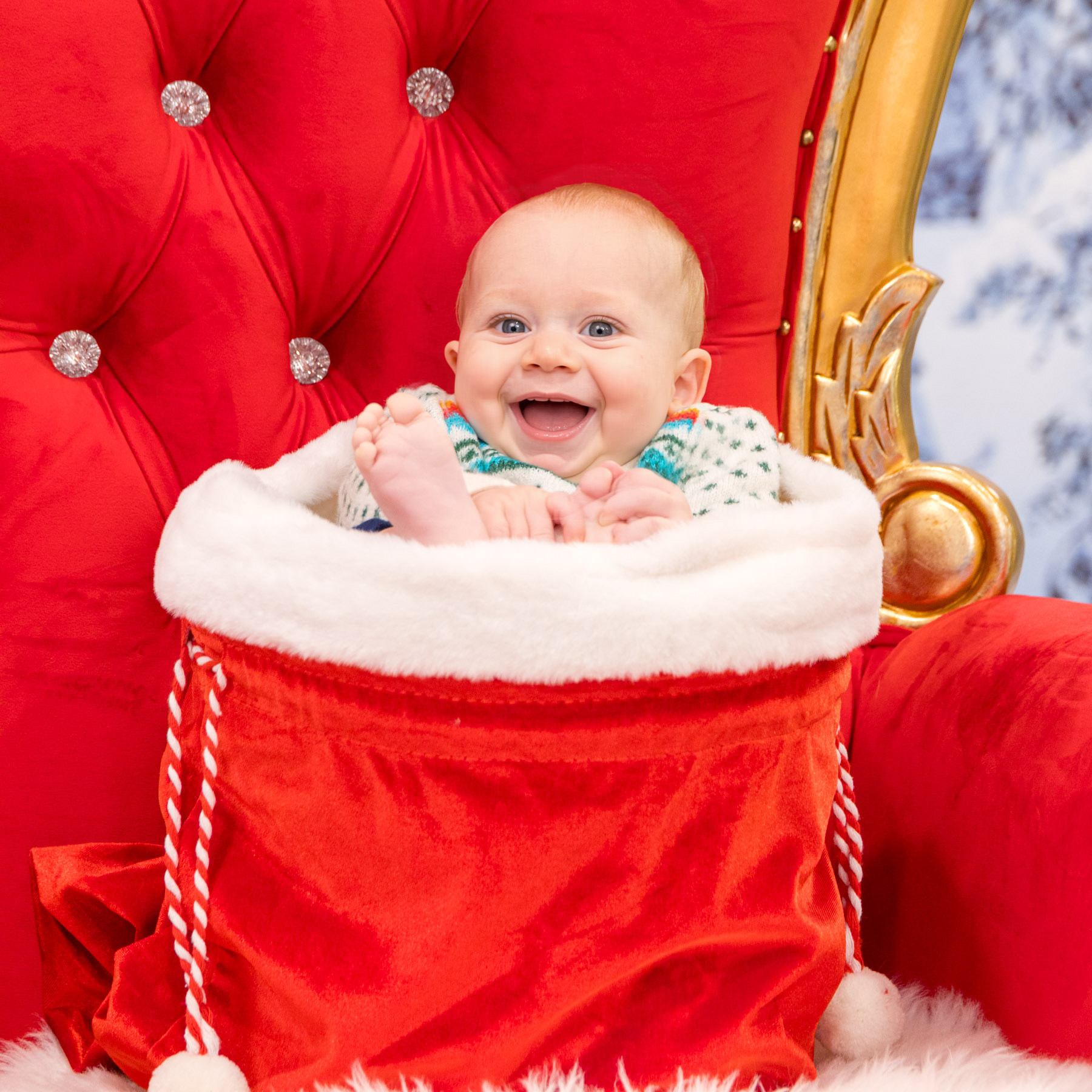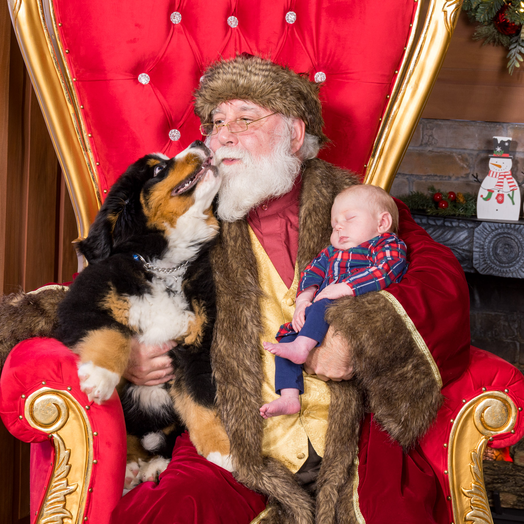 Our Santa is a gentle, quiet, and handsome jolly fellow—beloved by babies and parents alike for his calm, warm presence, and we have a great “wrangler” to help get the best images of you and your little one.
